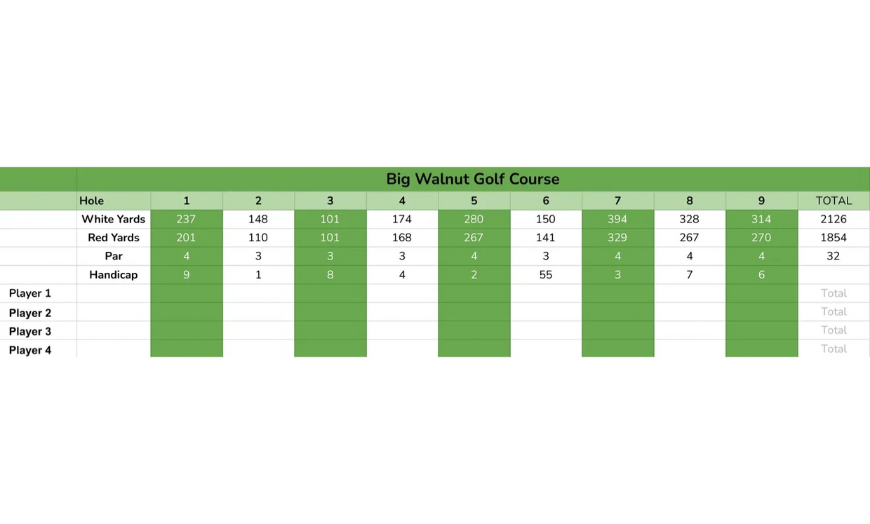 Big Walnut is an executive length par 32, nine hole course designed to challenge every level of player from beginner to low handicapper.